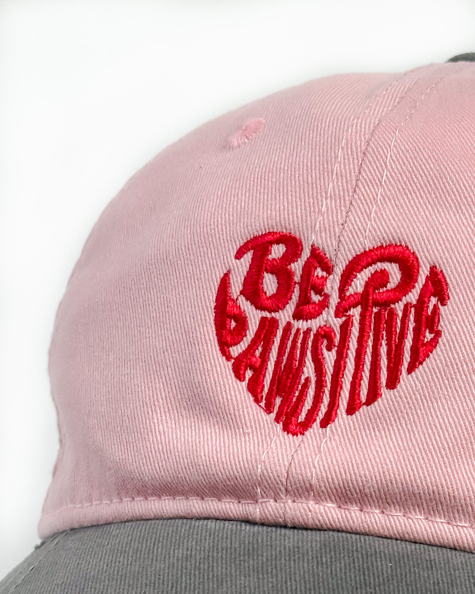 x🐾 Be Pawsitive – Embroidered Slogan Cap (Pink/Grey)