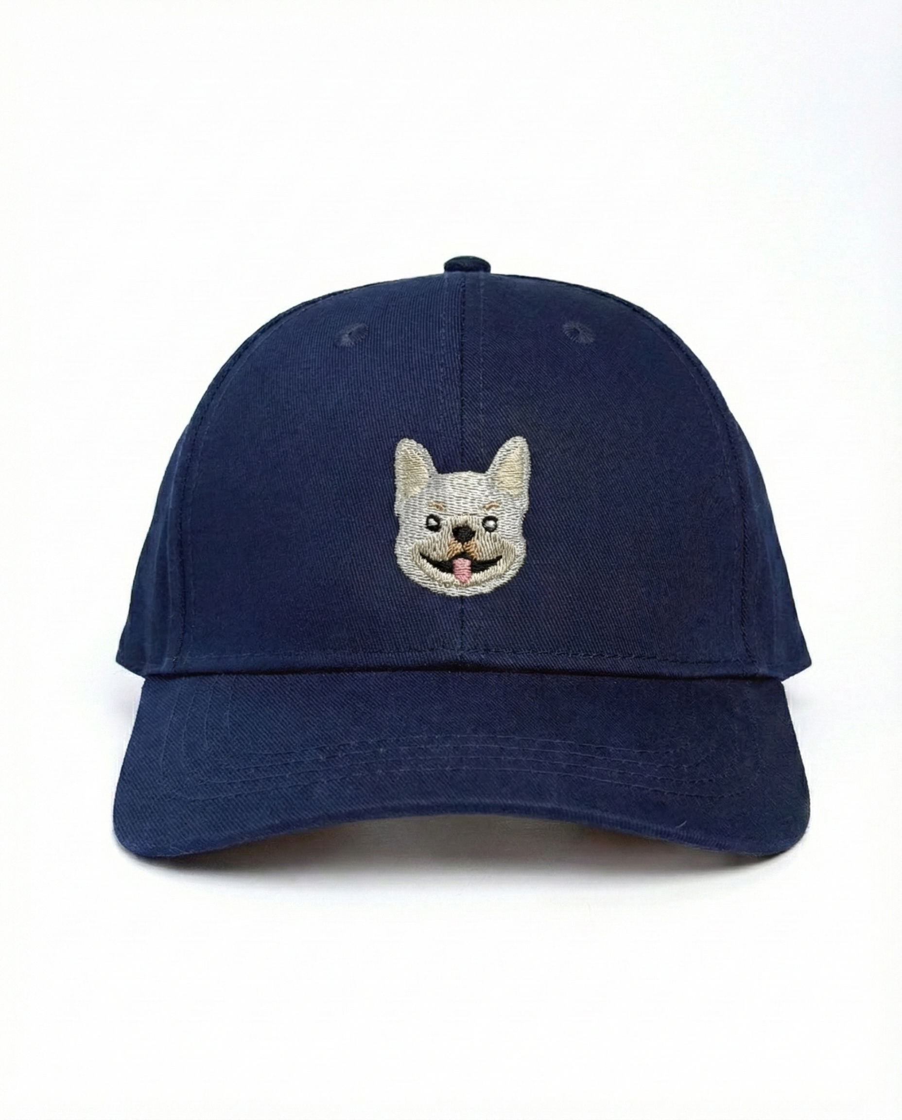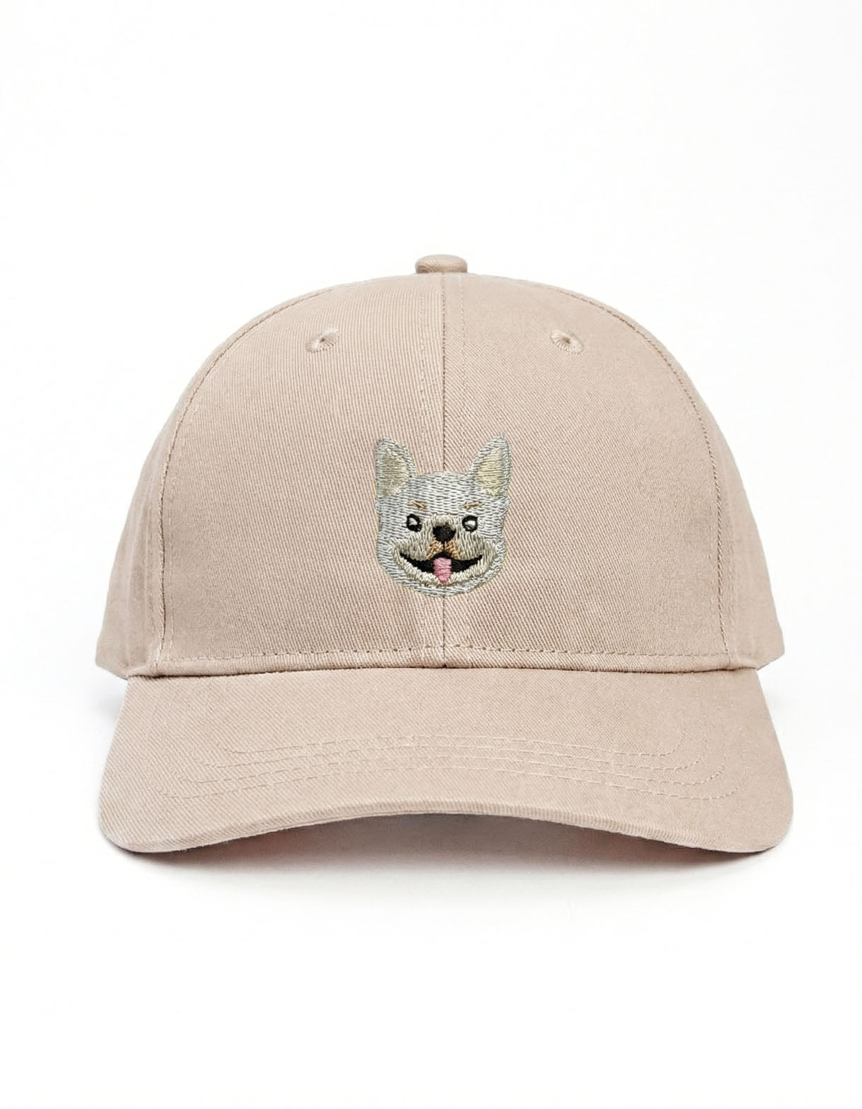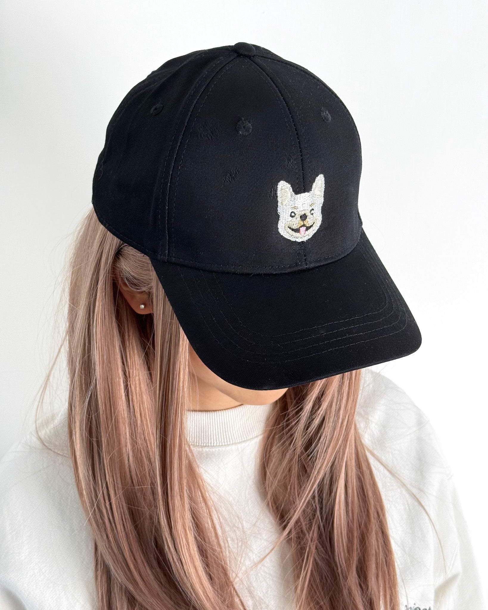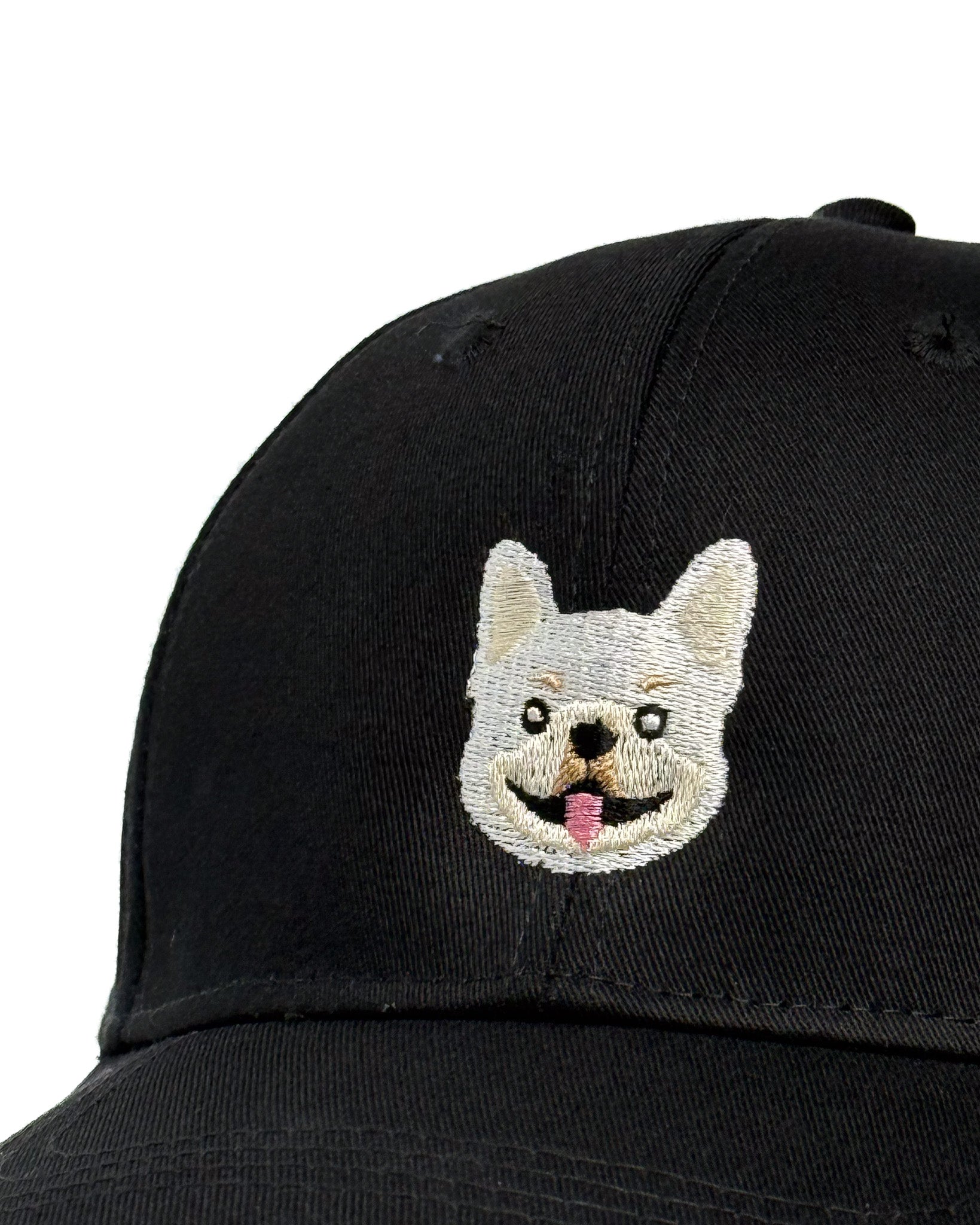 Celebrate your bat-eared bestie with this adorable embroidered cap made for Frenchie fans.