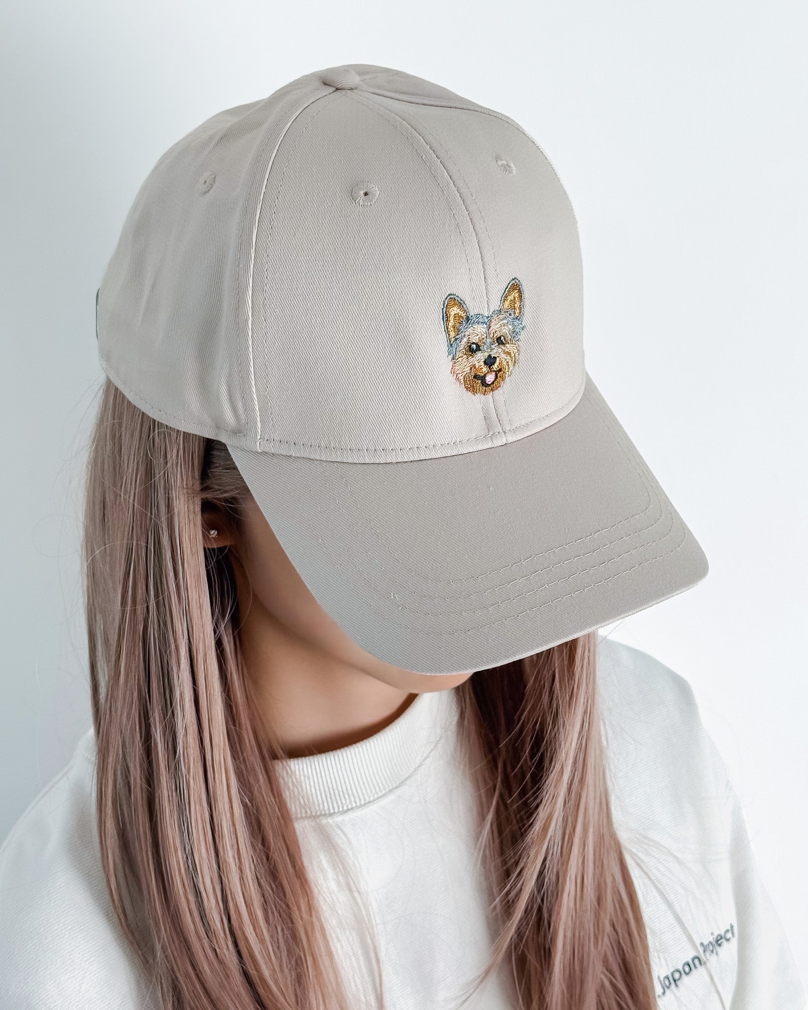 髮絲柔順、個性俏皮的小約,現在化成帽上的精緻刺繡圖案。